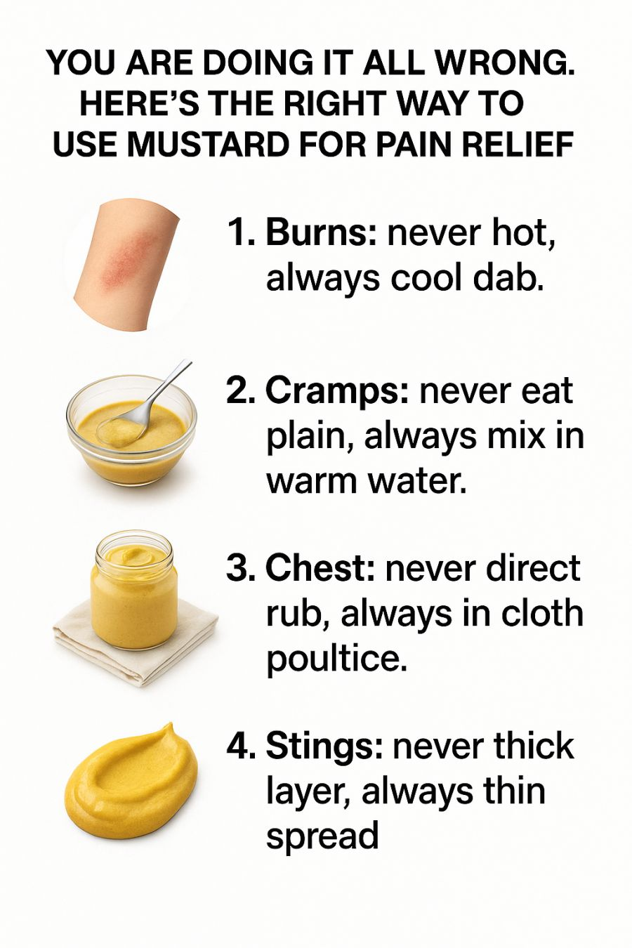 People in the 1800s actually burned themselves with mustard plasters because they fell asleep with them on. Even diluted mustard can create too much heat if left on the body too long. Today, this same error spreads online through “life hack” posts that ignore the risks.